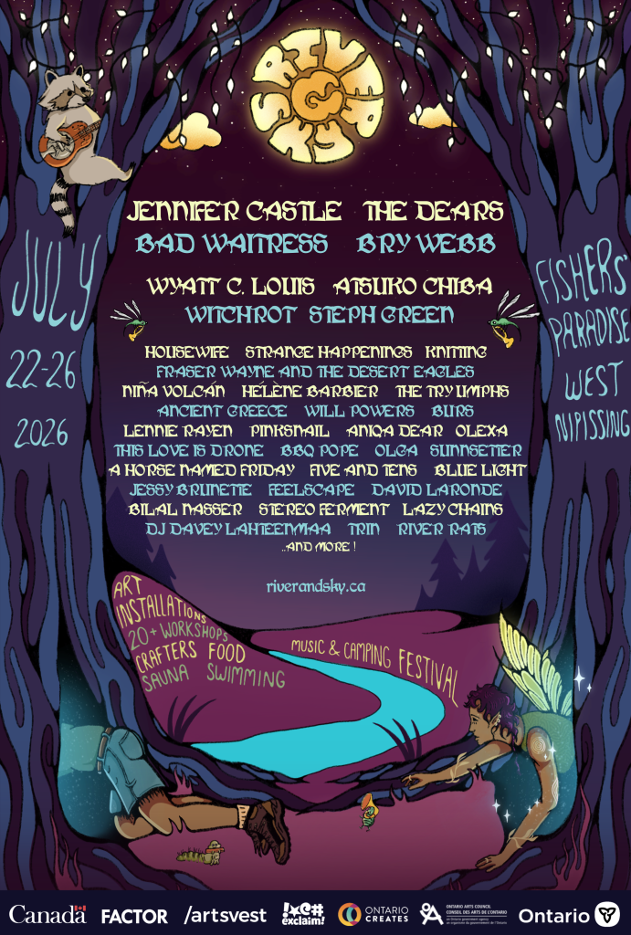 Our 18th festival takes place July 22-26, 2026 on the banks of the Sturgeon River, at Fishers’ Paradise in West Nipissing (see our map below or click here).